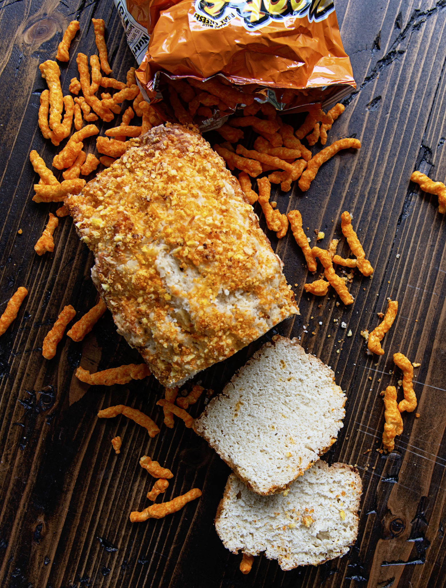 Because I used the cheese doodles are a coating to give the beer bread a crunchy crust.